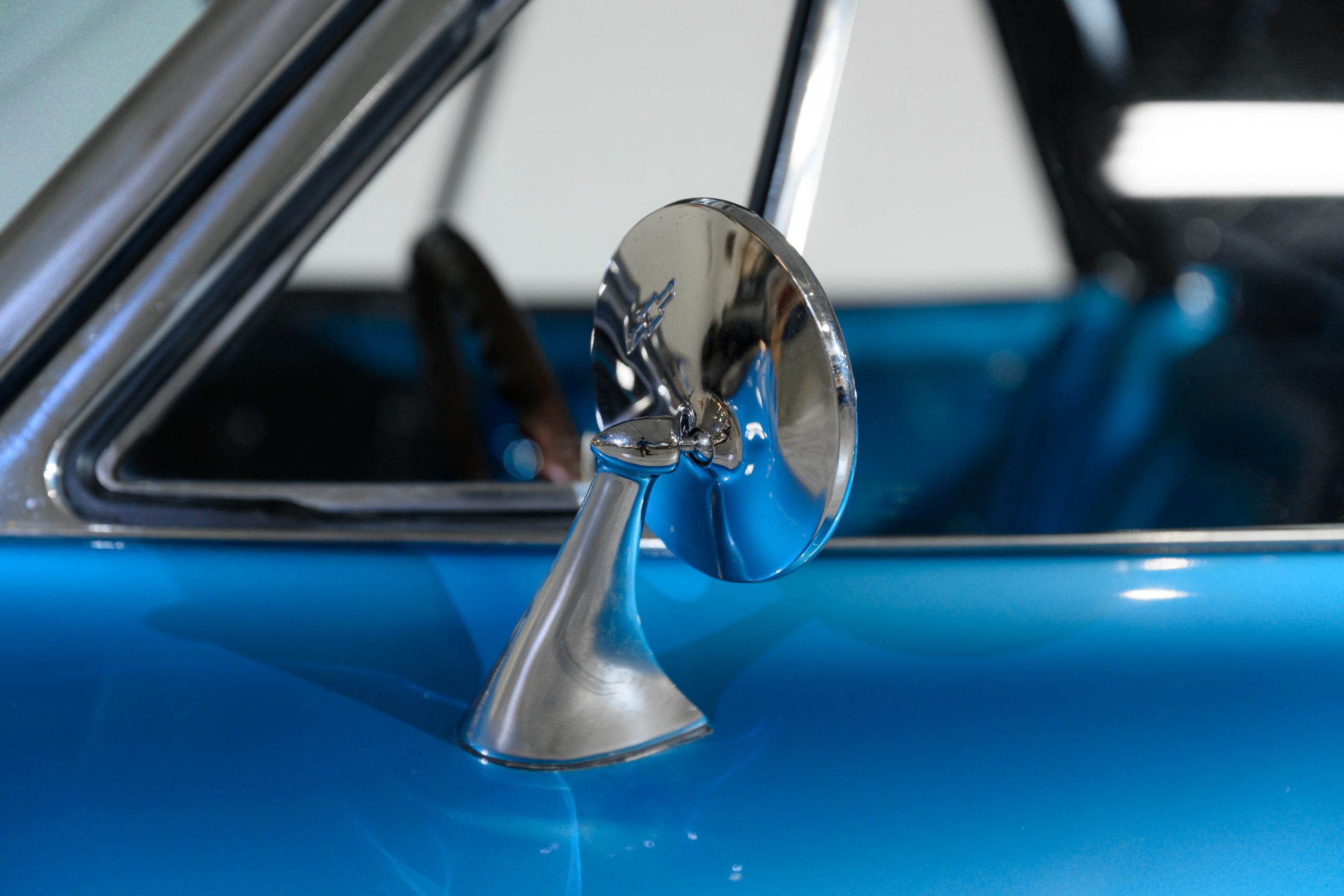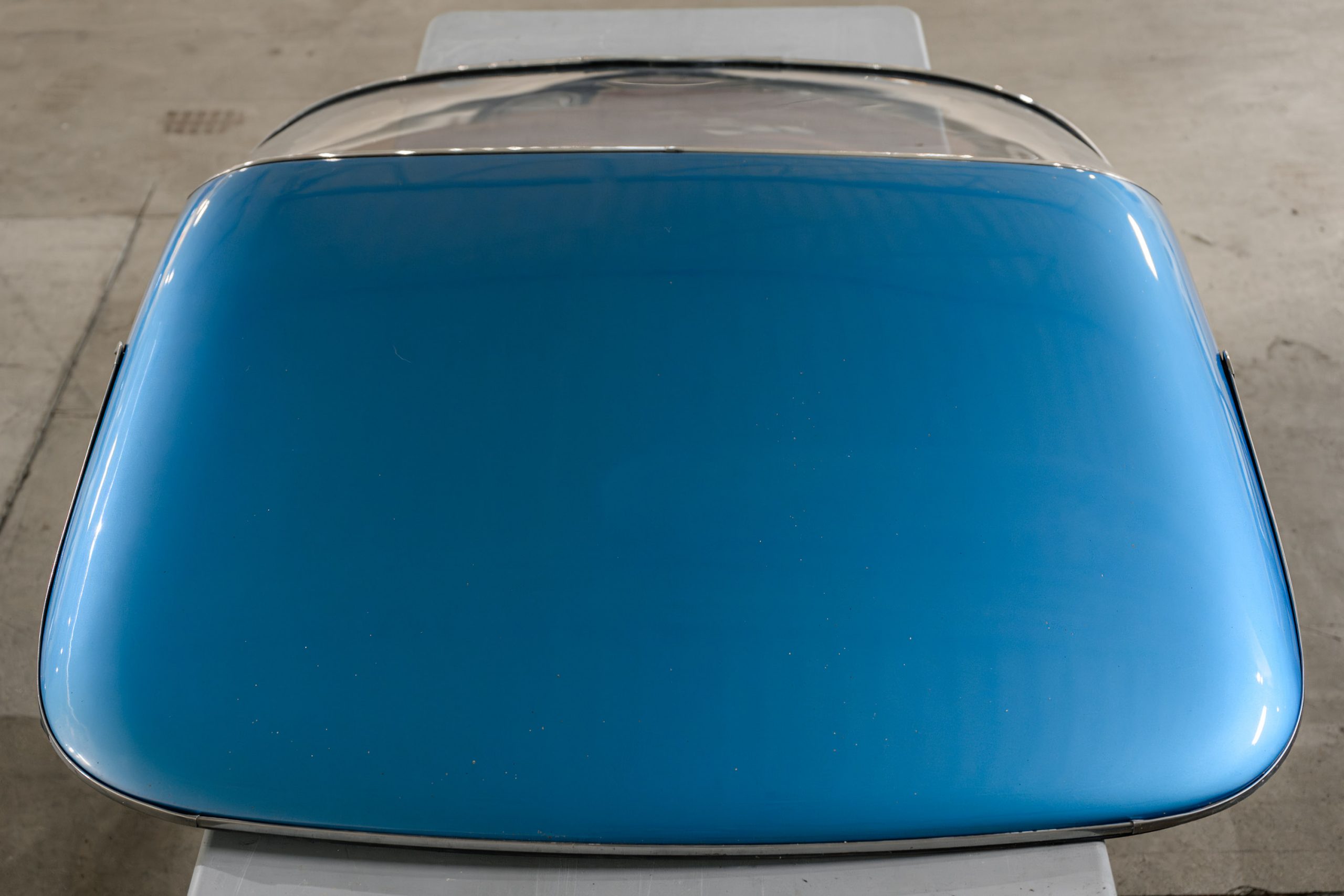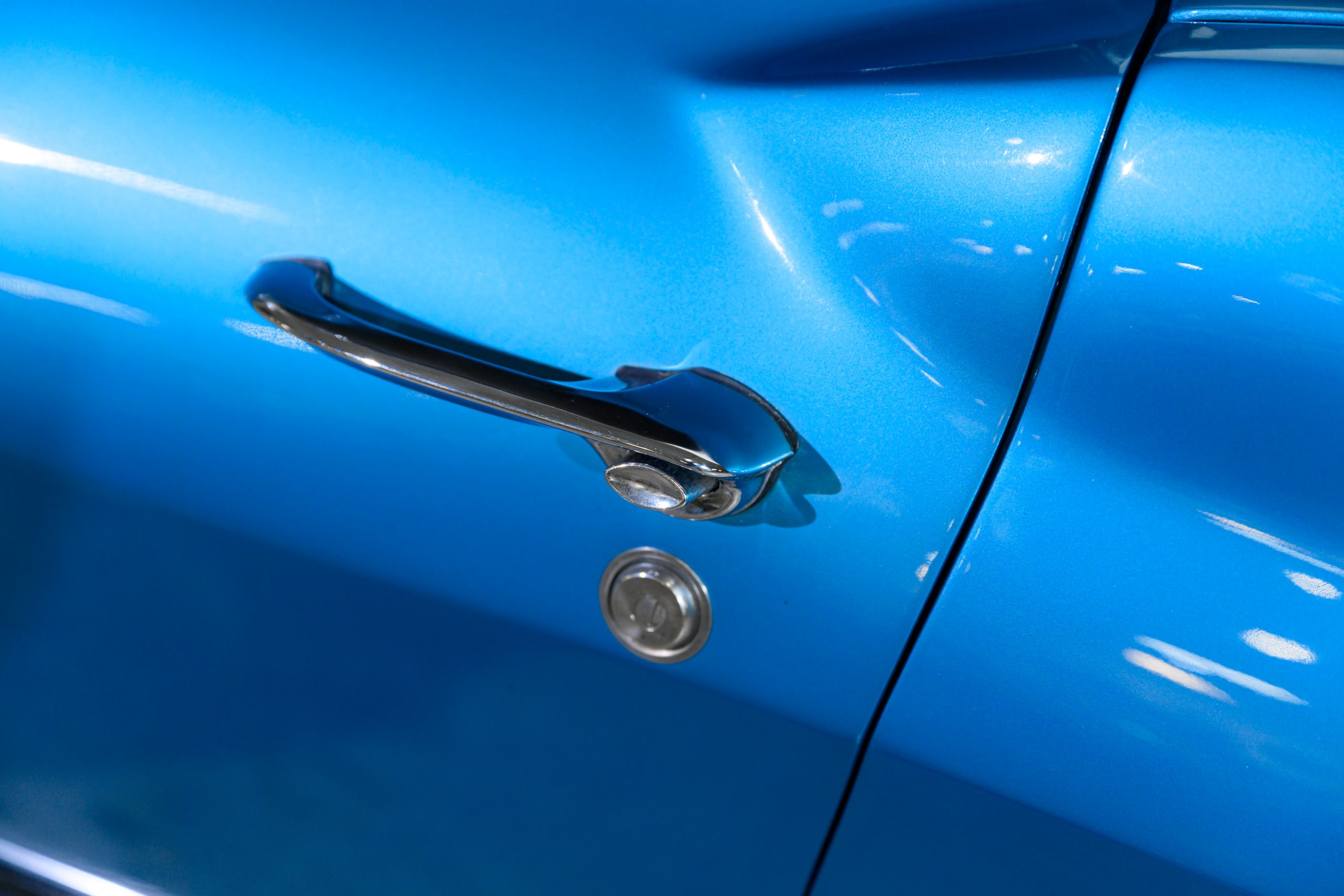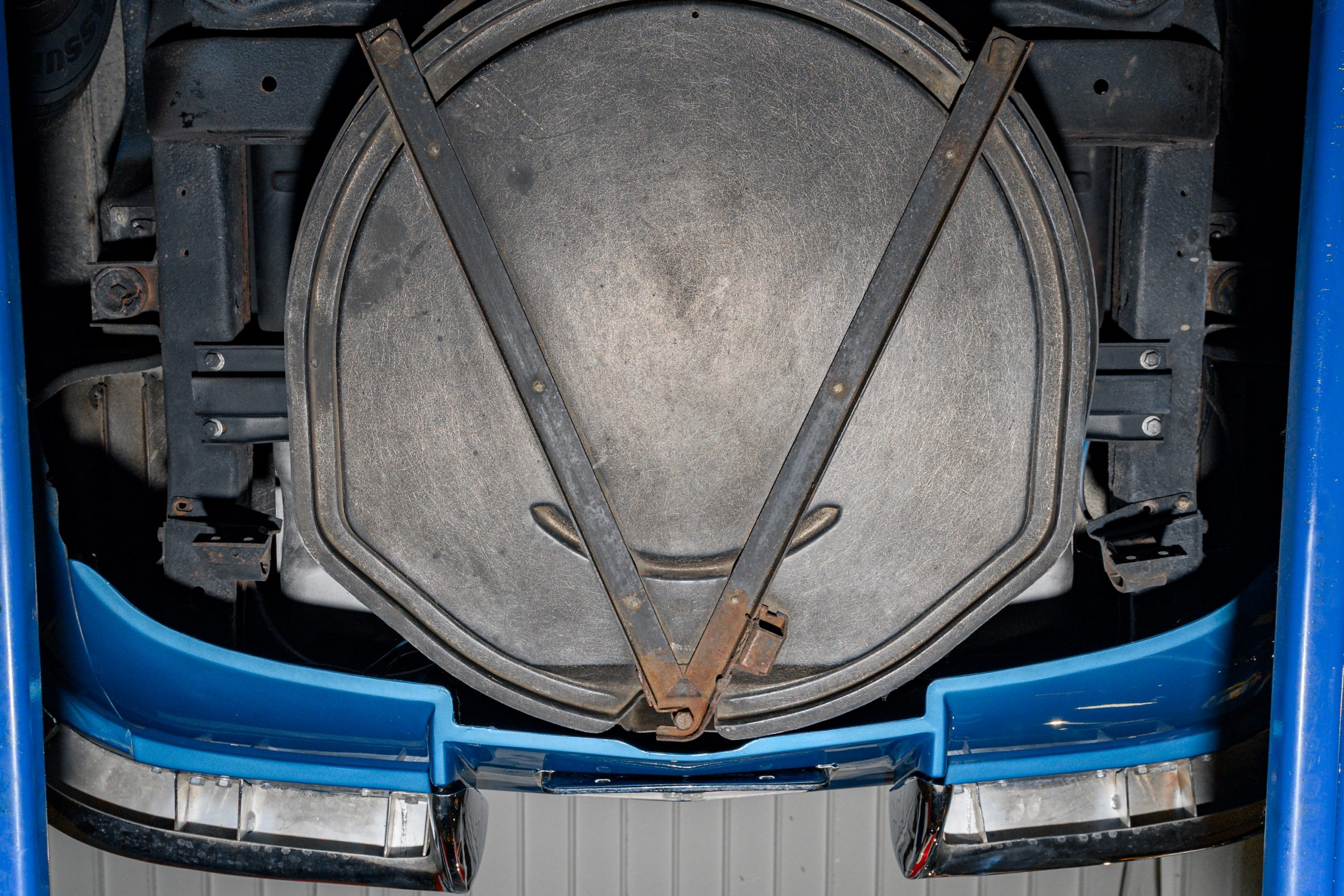 The car is presented in its original color of Marina Blue. The interior is Bright Blue vinyl with matching Blue carpet. This well preserved example retains a mix of preserved original paint and refinished areas.