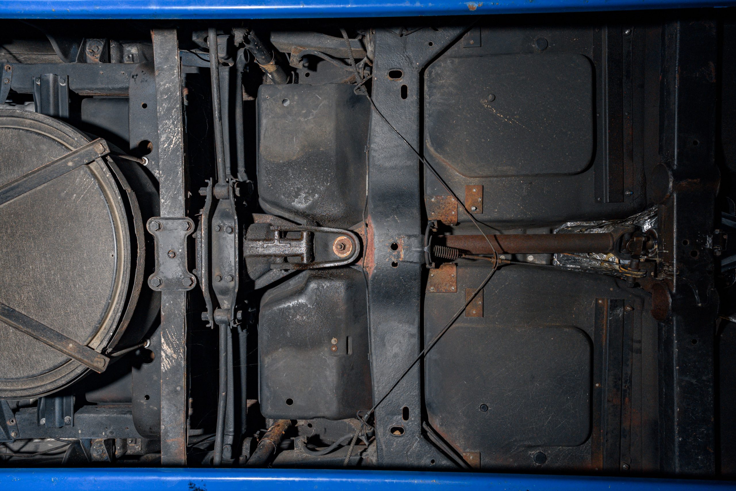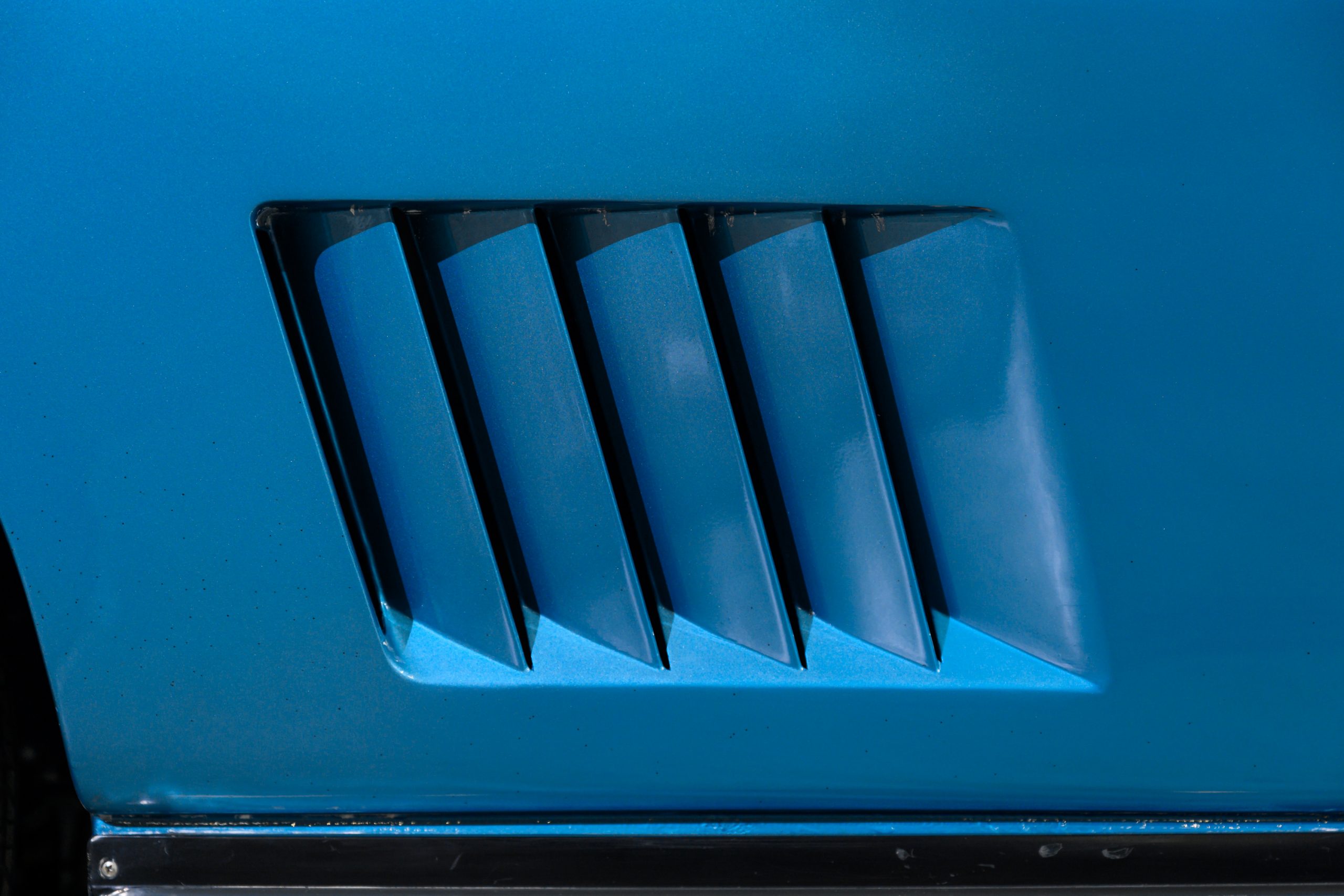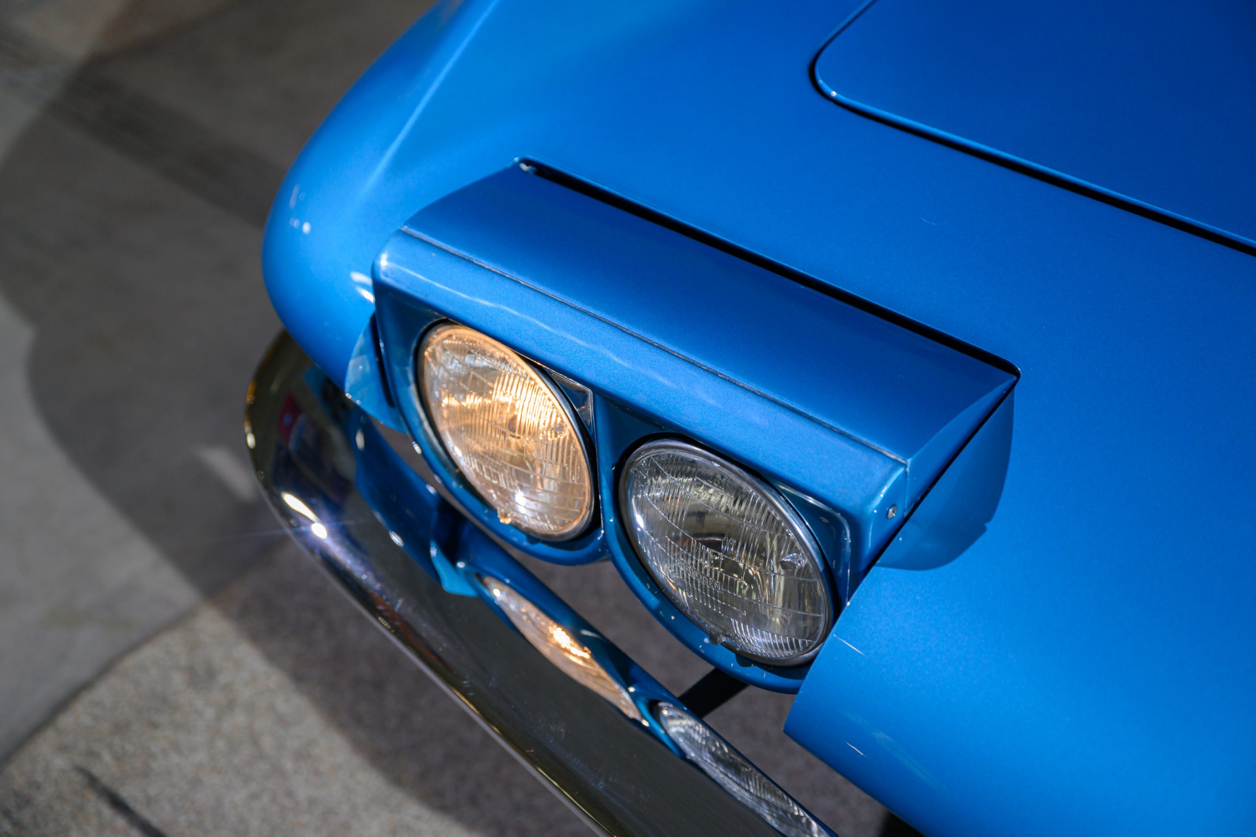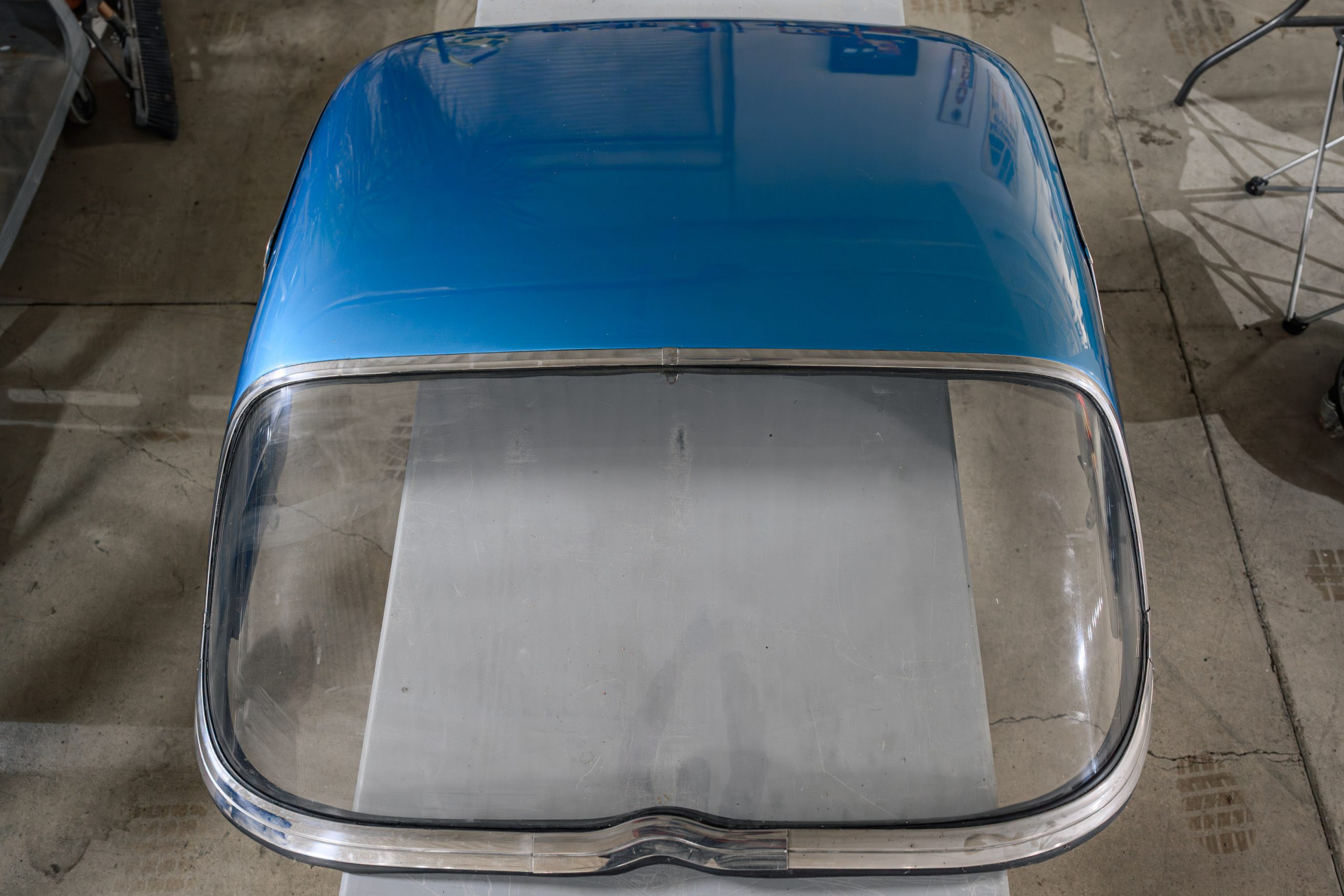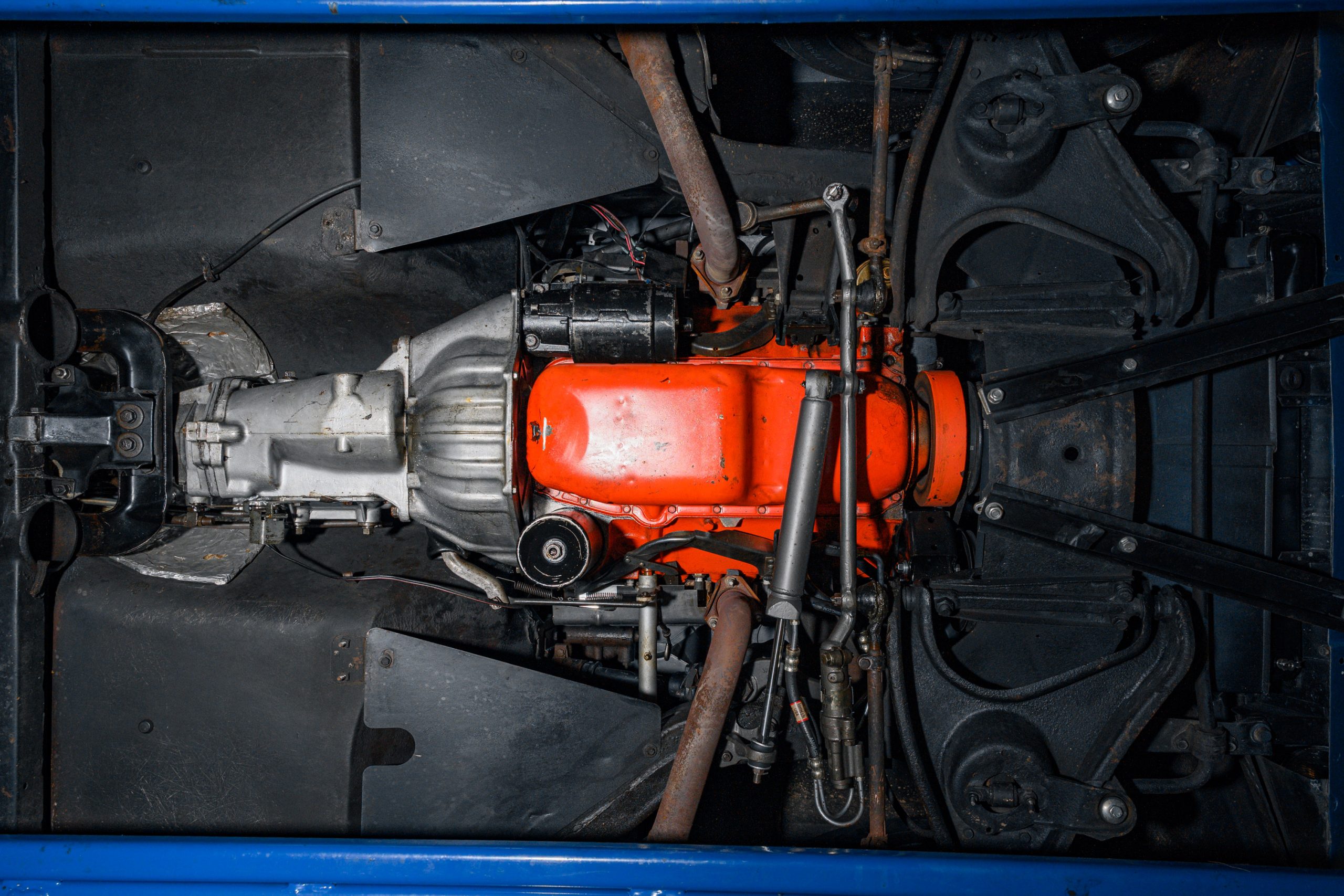 The car is presented in its original color of Marina Blue. The interior is Bright Blue vinyl with matching Blue carpet. This well preserved example retains a mix of preserved original paint and refinished areas.