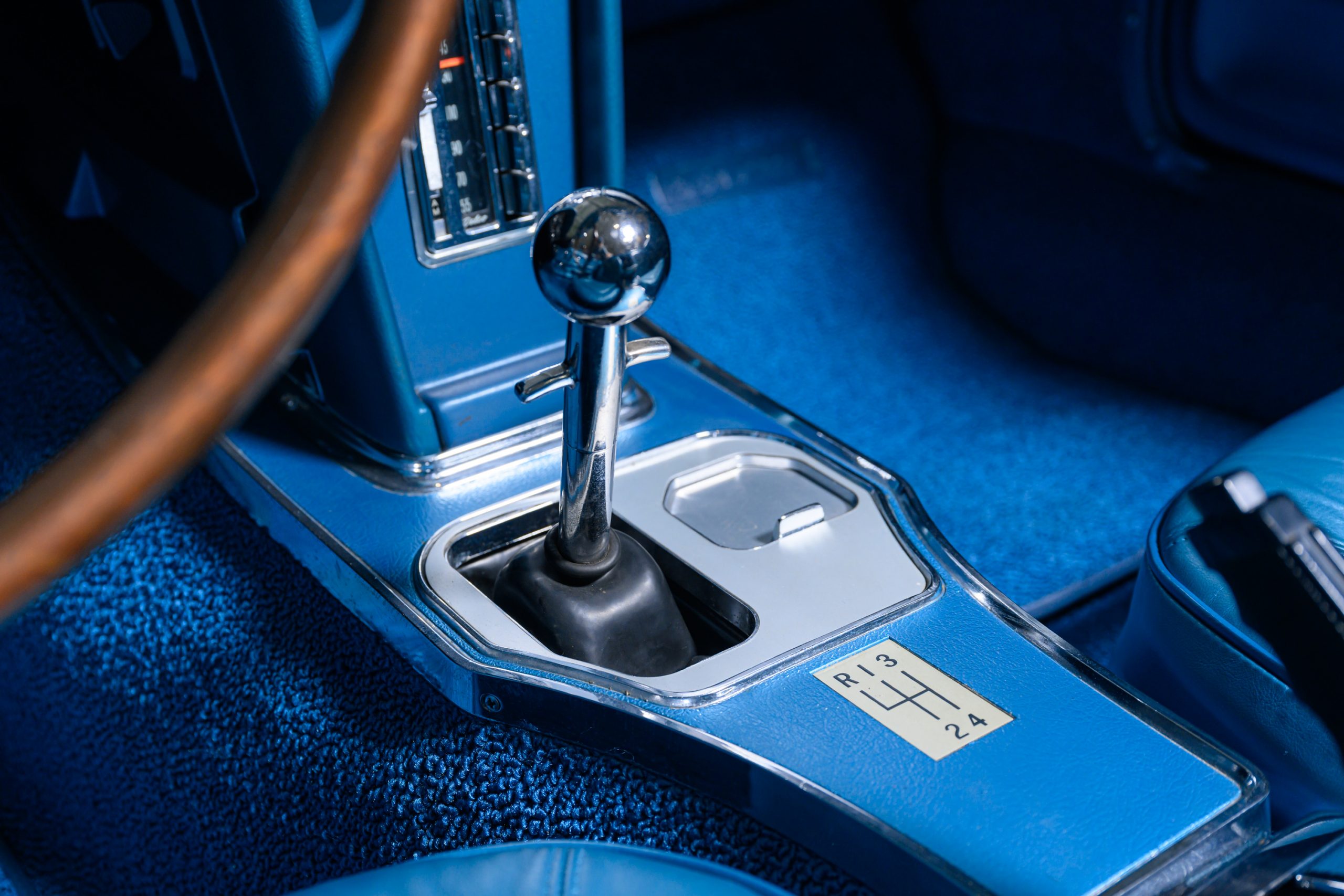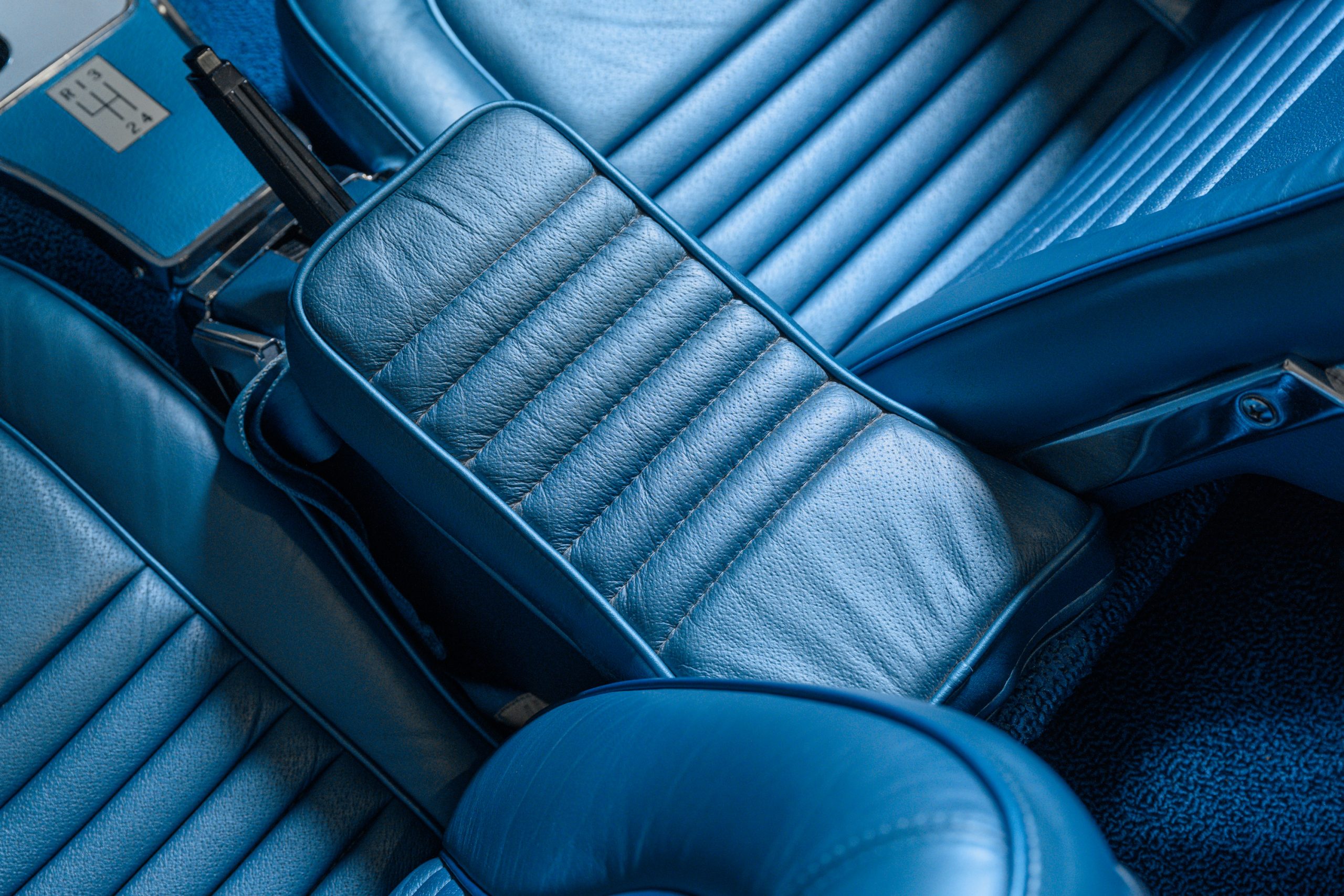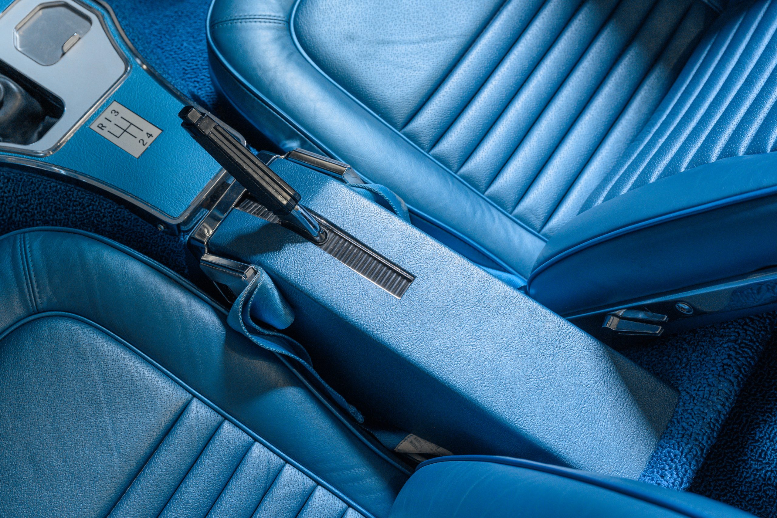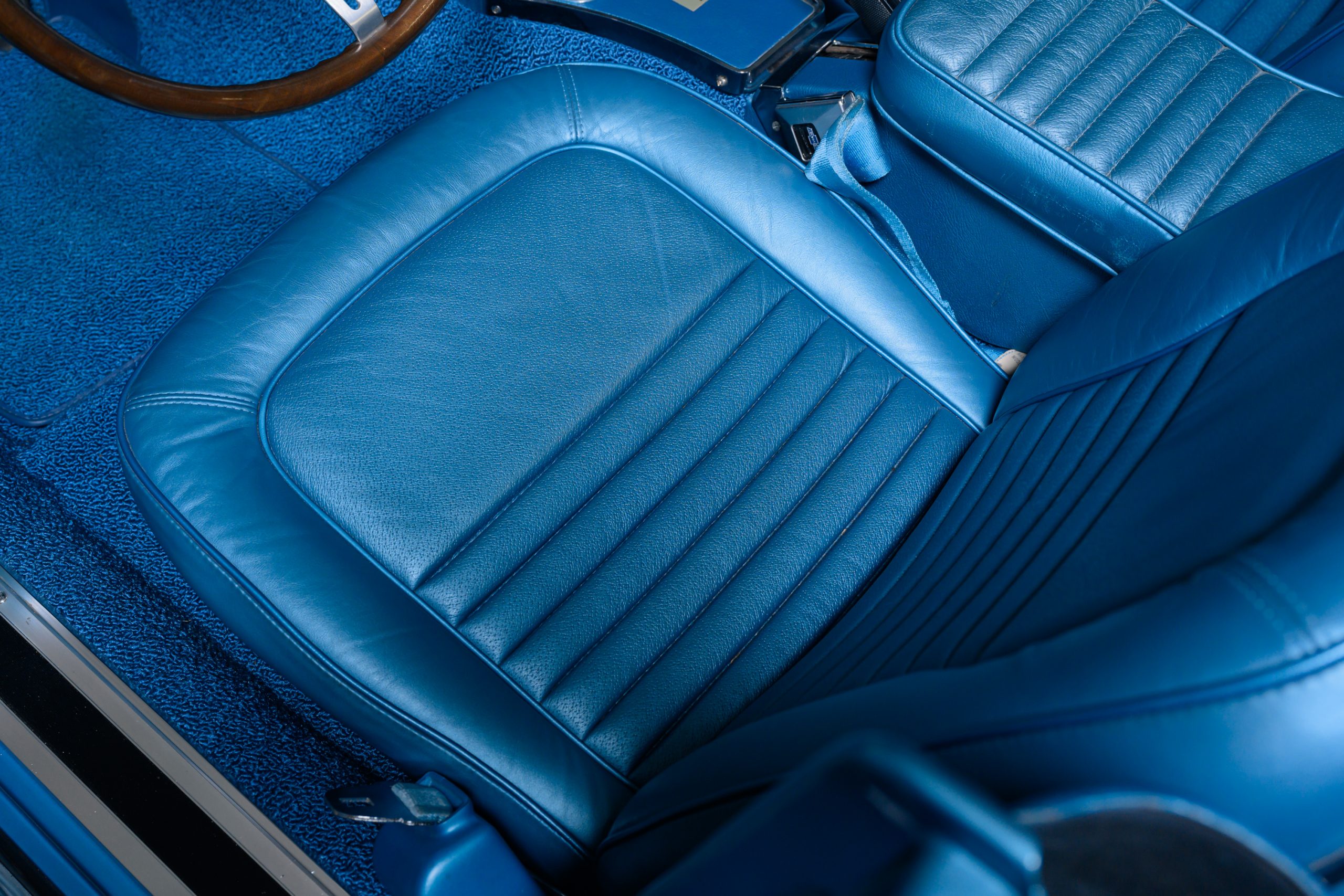 TRIM 414BA: Bright Blue Vinyl interior.