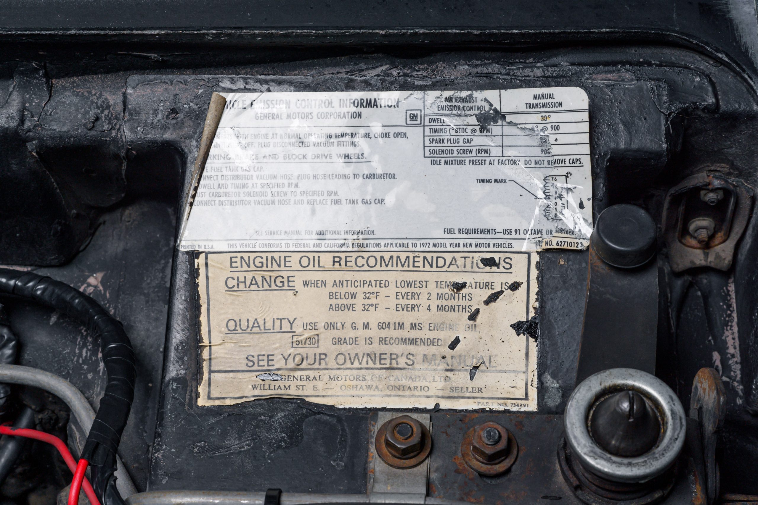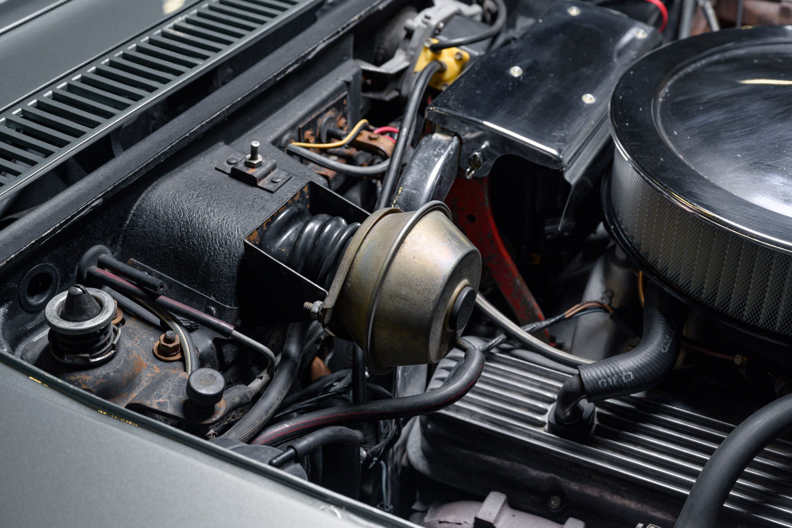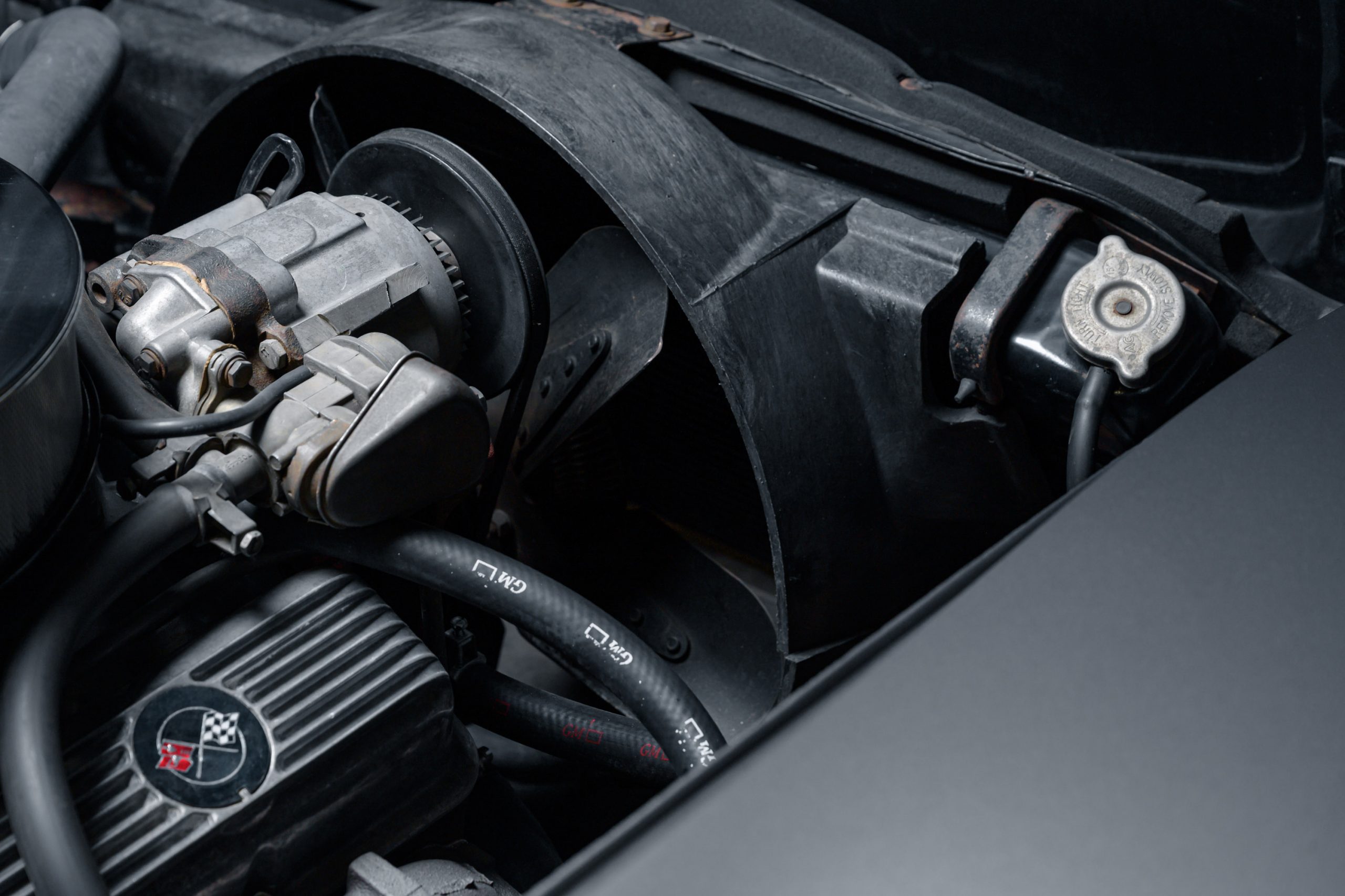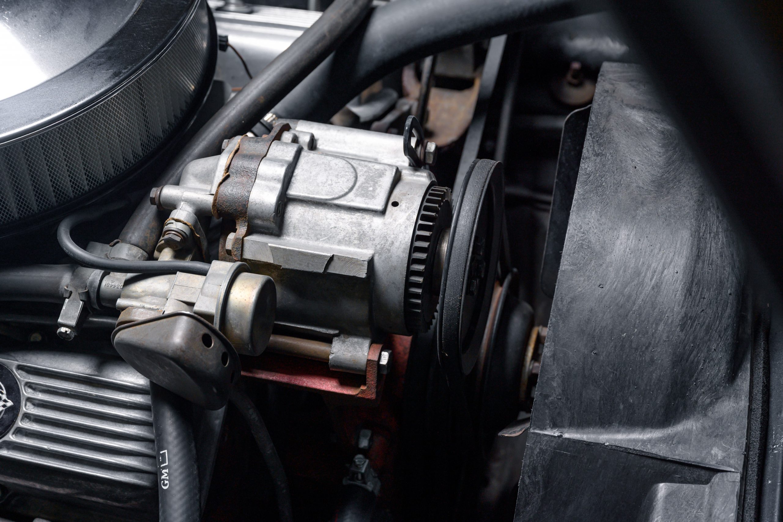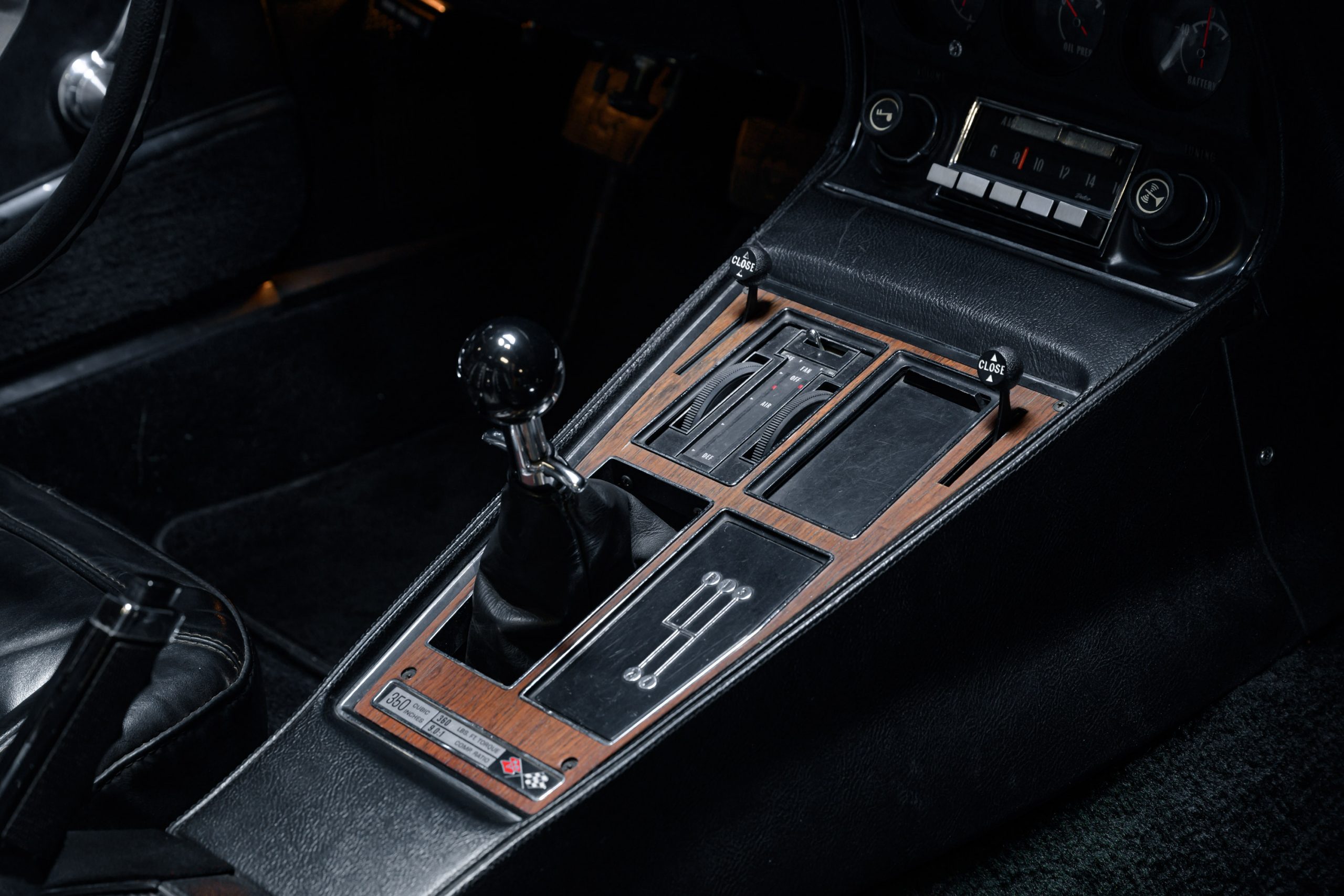 This special 1972 Chevrolet Corvette LT1 is powered by its original 350ci V8 paired with a four-speed manual transmission. There were a total of 1741 LT1 specification cars built in 1972. This car presents in the factory color combination of Steel Cities Gray over a black leather and vinyl interior, as confirmed by the trim tag, which decodes to paint code 983 and trim code 404. The tag also indicates a build date of the third week of October 1972. The 350ci LT1 engine retains its original, fully operational AIR pump and related emmissions equipment.