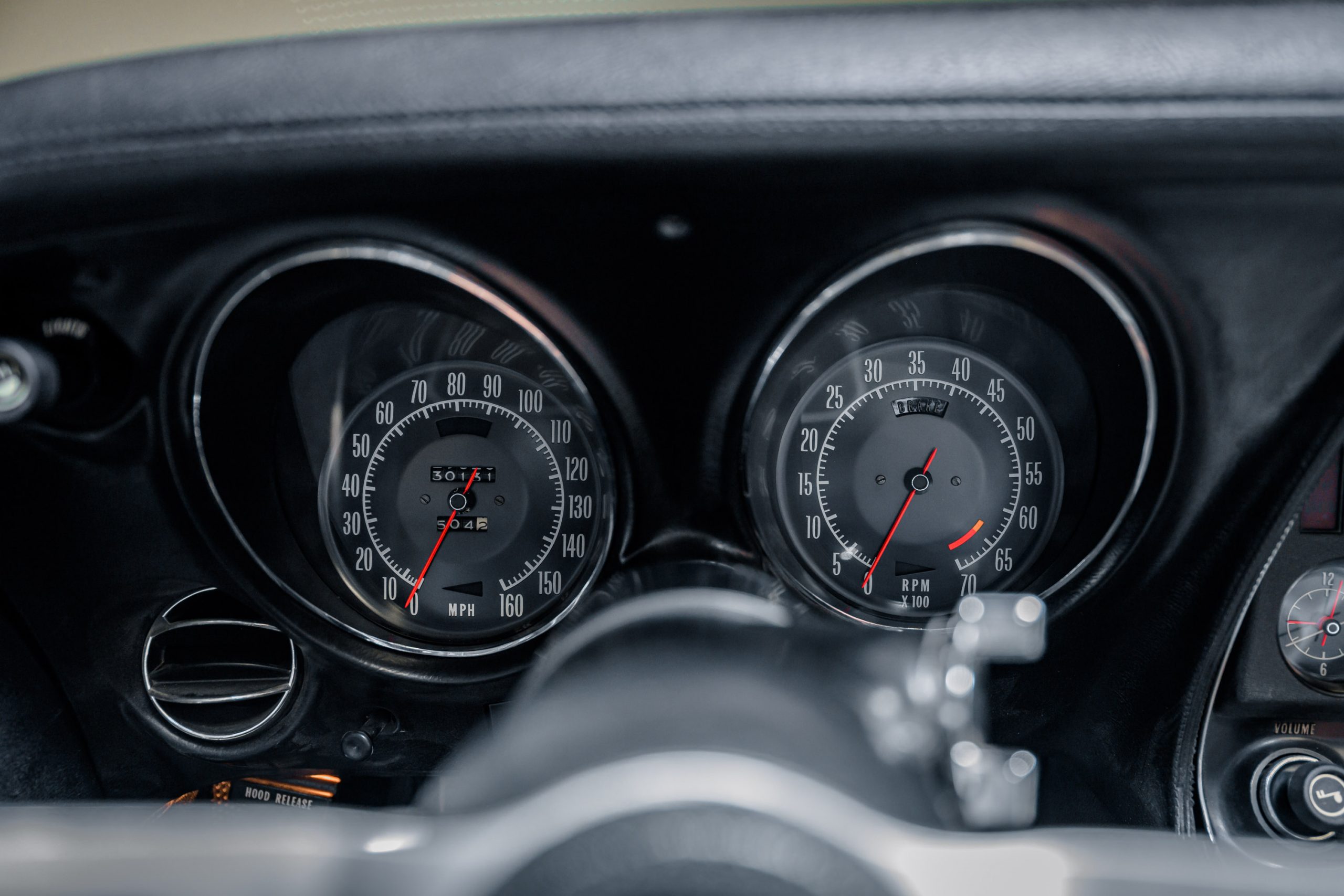 - Black Leather/Vinyl Interior: Period-correct materials with factory-style layout